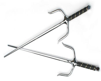 Arma típica do leste da china utilizada antigamente como ferramenta na medida de cercas e construções chinesas, acreditava-se anteriormente ter origem no japão. A finalidade do sai como arma reflete de suas formas distintas. Com perícia, pode ser empregada eficazmente contra uma espada longa, aprisionando a lâmina da espada no tsuba (guarda, extremidades laterais menores do que a central) do sai. Usuários habilidosos são capazes de quebrar lâmina presa com um movimento de suas mãos.